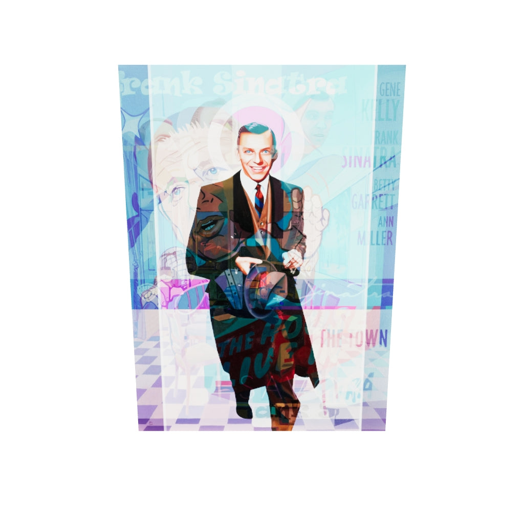 The artwork in question captures the legendary American singer and actor, Frank Sinatra, who was a member of the original Rat Pack and remains one of the best-selling artists of all time. Stuart McAlpine Miller has created a piece that celebrates Frank in his absolute glory as a world-famous entertainer. The artwork features the distinctive Savoy tiled flooring, which gives Frank a grounding within the hotel and ties him to the rich history of The Savoy. The overall style of the painting is characterized by bold brushstrokes and vibrant colors, conveying the energy and charisma that Frank was known for.